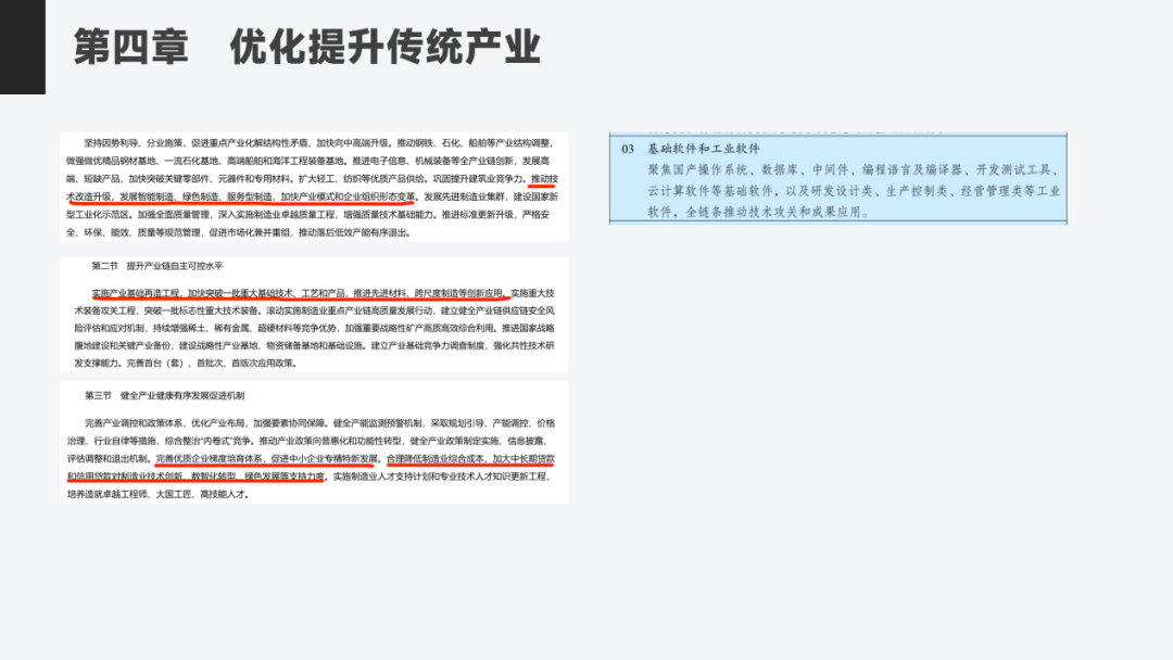 好,那我们具体来看,“十五五”规划里边的第四章的内容。是优化提升传统产业