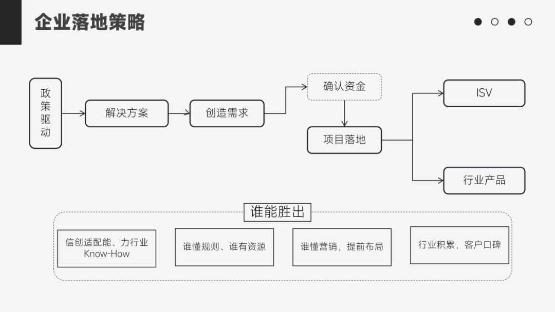 2.创造需求:别等客户提需求,要用政策做背书,用方案去创造需求。告诉客户:“国家都说了要建,你怎么还没建?”