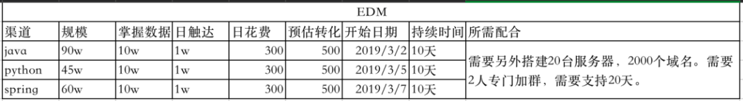 当然,这里细分完之后,又应该有一个表格,这个表格我以EDM为例进行展示,因为有些数据确实不方便透露。